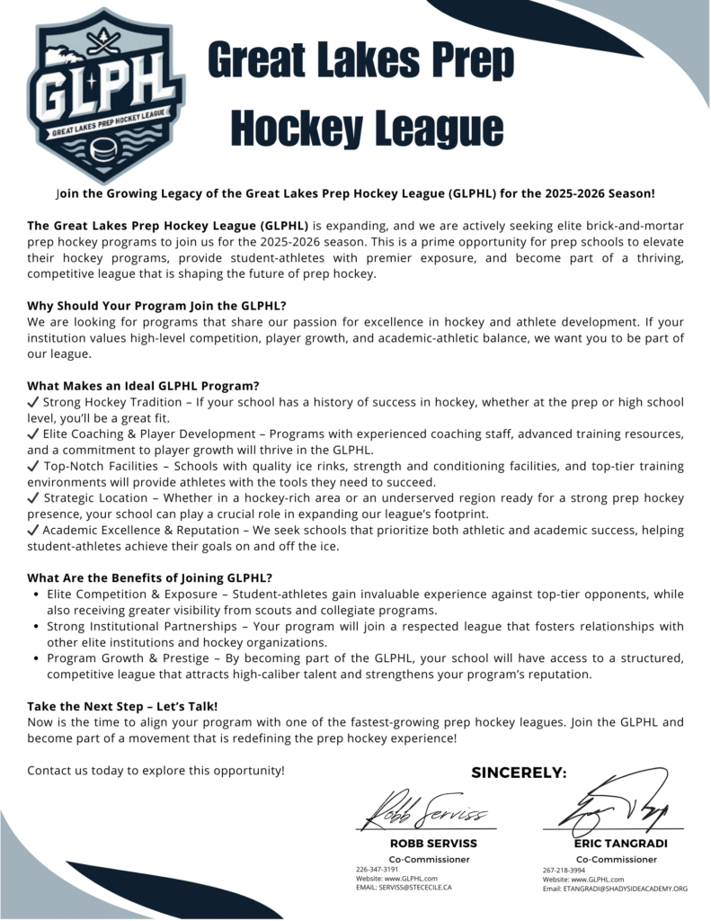 Join the Great Lakes Prep Hockey League! by SandyMX | Apr 10, 2025 | Uncategorized | 0 comments Submit a Comment Cancel replyYour email address will not be published. Required fields are marked *Comment * Name * Email * Website Save my name, email, and website in this browser for the next time I comment.